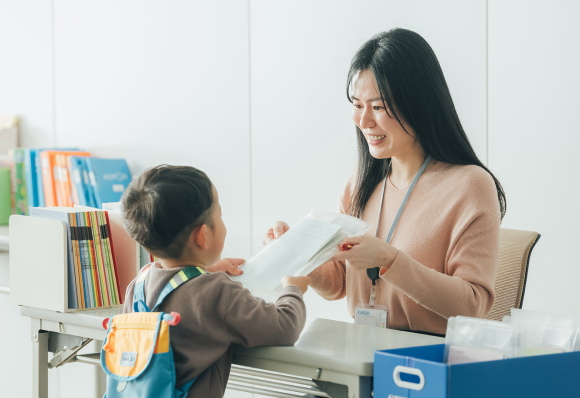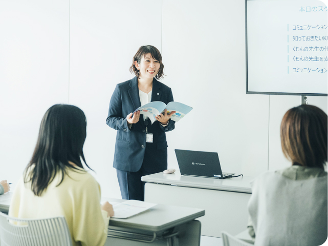 多くの子どもたちと教室で接することで得られる指導スキルや、保護者の方との接点を通じて得られるコミュニケーションなど、くもんの先生はご自身の成長にもつながる仕事です。