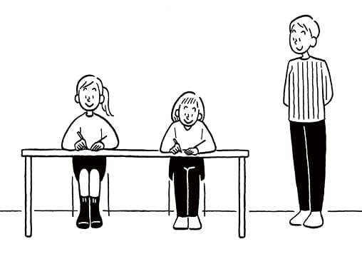 教室の時間になったら、生徒たちを迎えます。学習前に声をかけて、その日の学習の仕方や課題についてアドバイスをすることもあります。